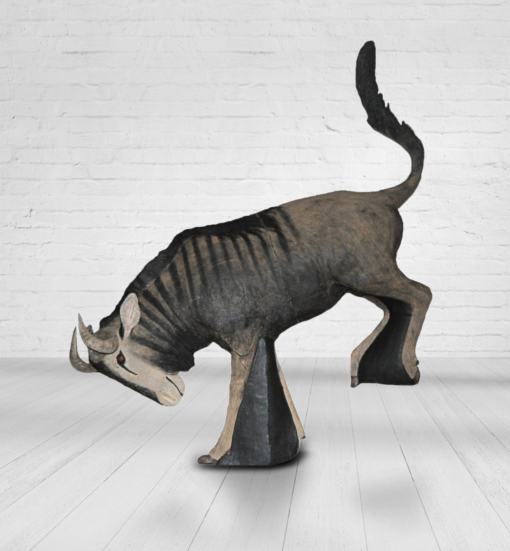 The blue wildebeest is a common animal found all over South Africa, they are quite popular to hunt. Here is our blue wildebeest leaping forward on its front legs. It comes with a replaceable core around the vital area.